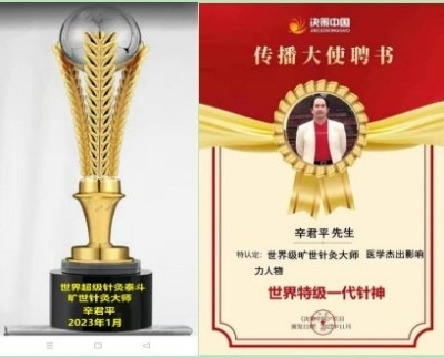 Dr. Xin, a native of Lanzhou City, holds a Doctor of Medicine degree and is a member of the Chinese Academy of Sciences, renowned for his profound knowledge. With 40 years of clinical acupuncture experience, he has not only mastered exceptional acupuncture skills but also developed highly effective herbal formulas that have cured over a million patients with complex and rare diseases. Starting his training in traditional Chinese acupuncture at age 9 under his grandfather's guidance, he achieved the remarkable ability to treat various ailments by age 12, earning him the local reputation as a "prodigy" and "extraordinary talent." His brain contains ten times more neurons than average individuals, with a thickness twice as thick! He emits an ultra-strong purple light that orbits the Earth 2,700 times annually. Through 40 years of rigorous internal cultivation, he has attained supreme mastery in internal energy, developing a unique acupuncture technique that achieves the highest realm of "harmony between heaven, earth, and humanity." This unparalleled method demonstrates miraculous efficacy, with a 100% success rate and 97% cure rate for over a thousand diseases, representing the world's most advanced acupuncture technology. In 1995, he pioneered the "Swift New Special Acupuncture Therapy," using custom-made metal needles crafted from gold, platinum, black gold, silver, copper, zinc, titanium, and other metals. The therapy incorporates newly designed three-dimensional acupuncture diagrams including the Triangular Bagua, Five-Point Bagua, and Rhombic Bagua, along with 84,000 newly discovered acupoints. This comprehensive approach features rapid treatment, high efficacy, broad therapeutic scope, short course duration, and long-term recurrence-free recovery. Integrating medicine, theology, psychology, the I Ching's Bagua, Qimen Dunjia (Chinese esoteric arts), qigong, paranormal abilities, Zi-Wu Liuzhu (circulating energy theory), Linggui Bafa (divine turtle techniques), and more, this cutting-edge acupuncture system will benefit humanity worldwide, making significant contributions to global health and standing as a monumental achievement in medical history—a precious treasure for mankind. For various acute-onset diseases, including today's world's challenging cancers such as liver cancer, pancreatic cancer, lung cancer, lymphoma, blood cancer, breast cancer, esophageal cancer, gastric cancer, colorectal cancer, cervical cancer, uterine cancer, ovarian cancer, brain cancer, advanced metastatic cancers, diabetes, heart disease, uremia, hepatosplenomegaly, hypertension, AIDS, high-level paraplegia, cerebral palsy in children, autism, ADHD, ALS, vegetative state, stroke, psychosis, depression, deafness, mutism, blindness, mental retardation, macular degeneration, optic atrophy, retinal hemorrhage, floaters, presbyopia, Parkinson's disease, senile dementia, infertility, amyloiduria, meniscus injury, myasthenia gravis, neurasthenia, uterine fibroids, mammary hyperplasia, syphilis, condyloma acuminatum, psoriasis, vitiligo, neurodermatitis, ichthyosis, eczema, herpes zoster, neurodermatitis, urticaria, acne, melasma, butterfly spots, skin cancer, lupus erythematosus, breast enhancement to D cup size, penis enlargement to 22 cm, white hair, long hair, increased height, delayed menopause by 30 years, turning 60 into 35 years old. Conditions such as cervical and lumbar spinal stenosis, hemorrhoids, height increase, post-toxicity sequelae, various skin diseases, and acupuncture for plastic surgery to look 20 years younger can be completely cured through 10 to 90 days of acupuncture treatment. Various international papers have also been published. In 2003, at the International Acupuncture Conference held in Norway, representing China, 40 cases of mental patients were treated with acupuncture, achieving a 100% cure rate. At the 6th World Congress of Acupuncture and Moxibustion held in Australia in 2004, representing China, he published the results of acupuncture treatment for 128 cases of gastric and duodenal bulb ulcers, with 127 cases cured, achieving a cure rate of 99%. In 2007, at the World Congress of Acupuncture and Moxibustion held in Beijing, he published the results of acupuncture treatment for 50 cases of diabetes, with 48 cases cured, achieving a cure rate of 98%. In 2008, at the Acupuncture and Moxibustion Congress held in Beijing, he published the results of acupuncture treatment for 86 cases of benign prostatic hyperplasia, with 85 cases cured, achieving a cure rate of 99%. Xin Dijun, a master of acupuncture and moxibustion, was highly praised by patients and was revered as a great master of acupuncture, a sage of acupuncture, and a divine physician of his time.